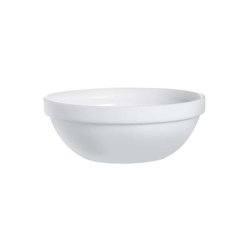 Eine Schale aus weißem Opalglas mit 12 cm Durchmesser aus der etwas hochwertigeren Restaurantlinie. Dank dickerer Wände und etwas höherem Gewicht wirkt sie besonders edel.