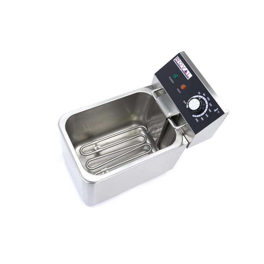 Die 4-Liter-Fritteuse ist für anspruchsvolle, professionelle Anwender konzipiert. Gehäuse und Ölbehälter sind aus Edelstahl (18/0) gefertigt. Der Ölbehälter ist zur einfacheren Reinigung herausnehmbar. Zur Ausstattung gehören außerdem ein herausnehmbarer Frittierkorb und ein Deckel. Der Frittierkorb verfügt über einen langen, hitzeisolierten Griff für leichteres Manövrieren bei hohen Temperaturen.