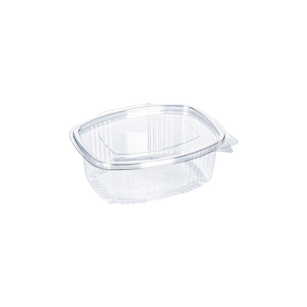 Lebensmittelbehälter aus PET-Kunststoff, ideal für den Transport von kalten Speisen oder zum Mitnehmen.