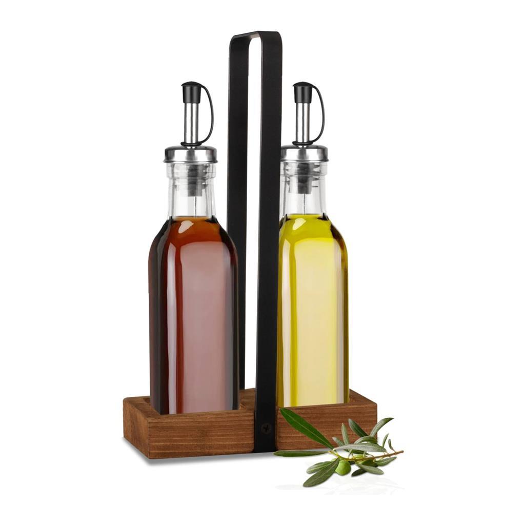 Das hölzerne Öl- und Essig-Gewürzset mit schwarzen Metallaccessoires ist eine unverzichtbare Ergänzung für jeden Tisch – sowohl wegen seines eleganten Aussehens als auch wegen seines erschwinglichen Preises.