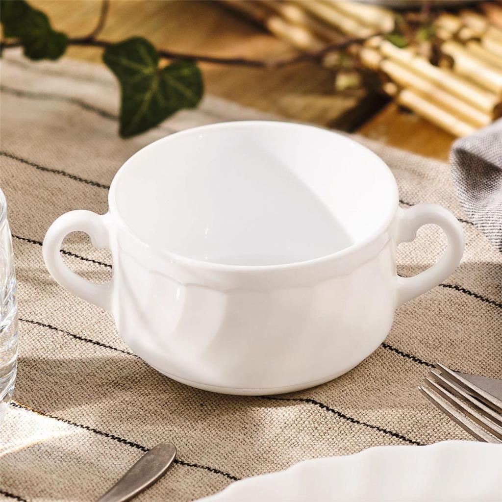 Suppenschüssel mit Henkeln aus weißem Opalglas, 6 Stück pro Packung.