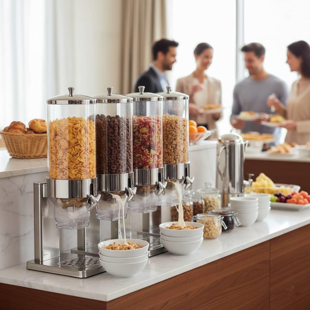 Dieser Müslispender (20×24×65 cm groß) eignet sich ideal zur einfachen und hygienischen Aufbewahrung und Portionierung von Müsli, Cerealien oder anderen Trockenlebensmitteln. Der transparente Behälter ermöglicht die schnelle Kontrolle des Inhalts, während die robuste Konstruktion eine lange Lebensdauer gewährleistet. Er ist für den Einsatz in privaten Küchen, Cafés, Hotels und ähnlichen Betrieben geeignet.